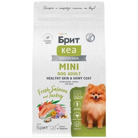 Brit Care Superpremium Mini Dog Adult. Healthy Skin & Shiny Coat. Fresh Salmon & Turkey. Полнорационный сухой корм суперпремиум-класса со свежим лососем и индейкой для взрослых собак мини-пород (до 10 кг). Здоровая кожа и шерсть.