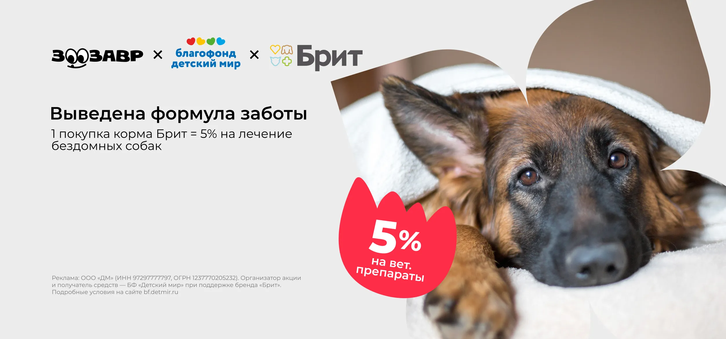 Условия участия просты: при покупке любой упаковки корма Брит Премиум или Брит Кеа в «Зоозавре» — в магазинах, через мобильное приложение или на сайте — 5% от стоимости будет перечислено на закупку ветеринарных препаратов для животных приюта.