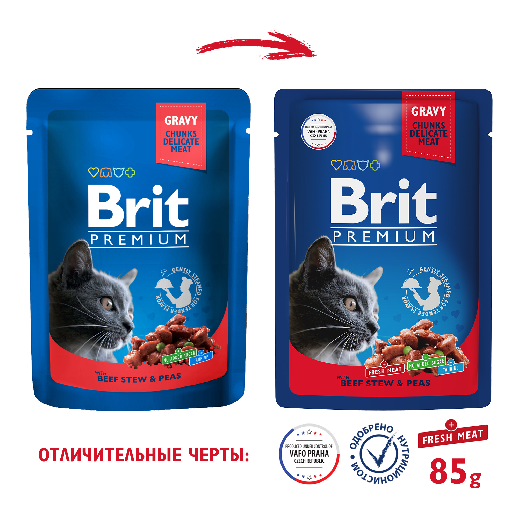Новая линейка паучей в соусе Брит Премиум Российского производства обладает уникальной рецептурой: