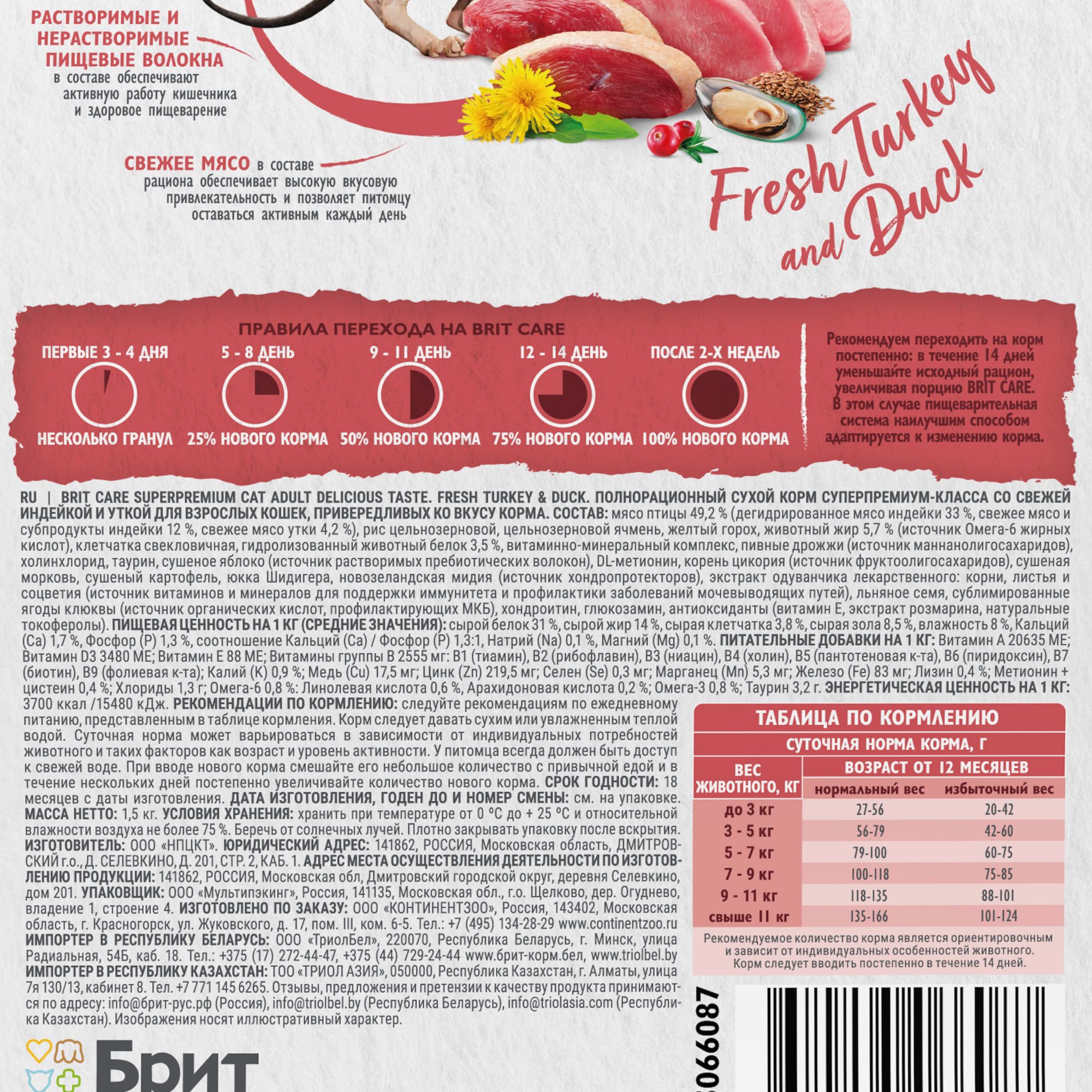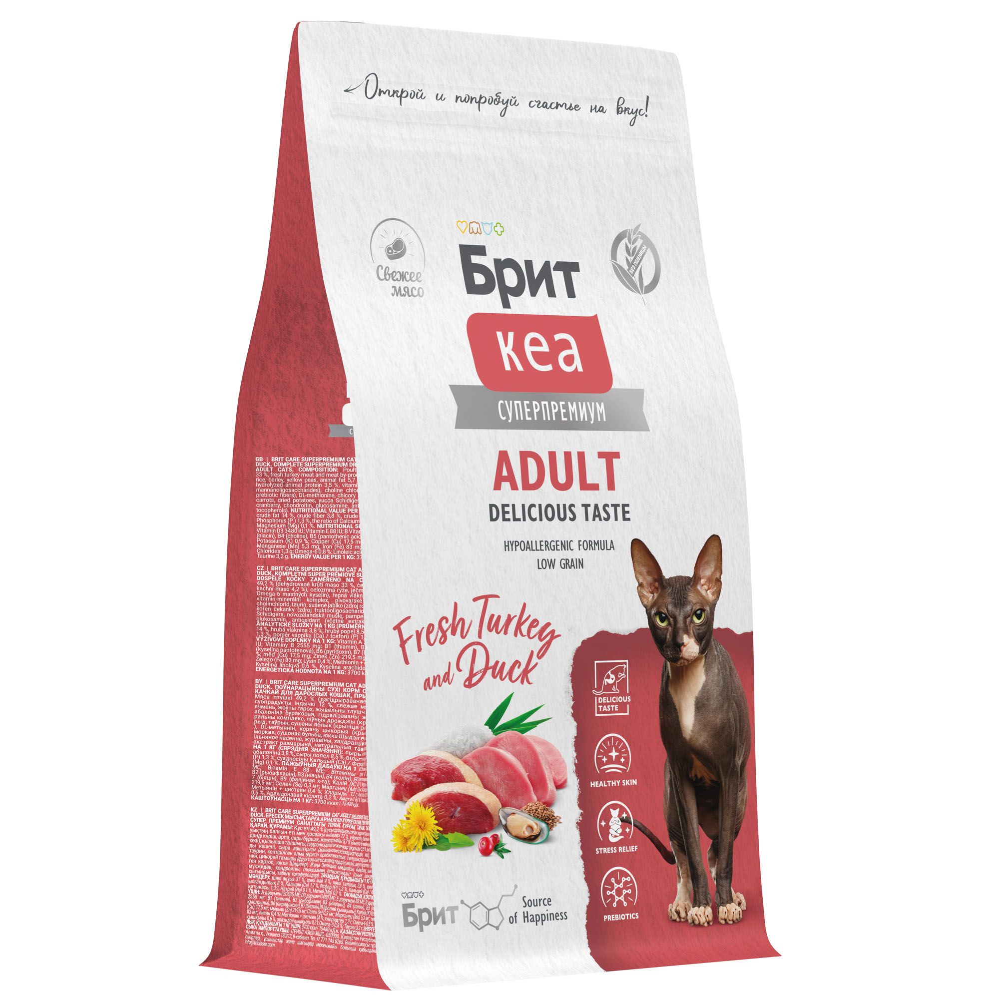 - BRIT CARE, Сухой корм с инд. и уткой д/взр.прив.кошек "Cat Adult Delicious Taste", 1.5 кг, 5066087