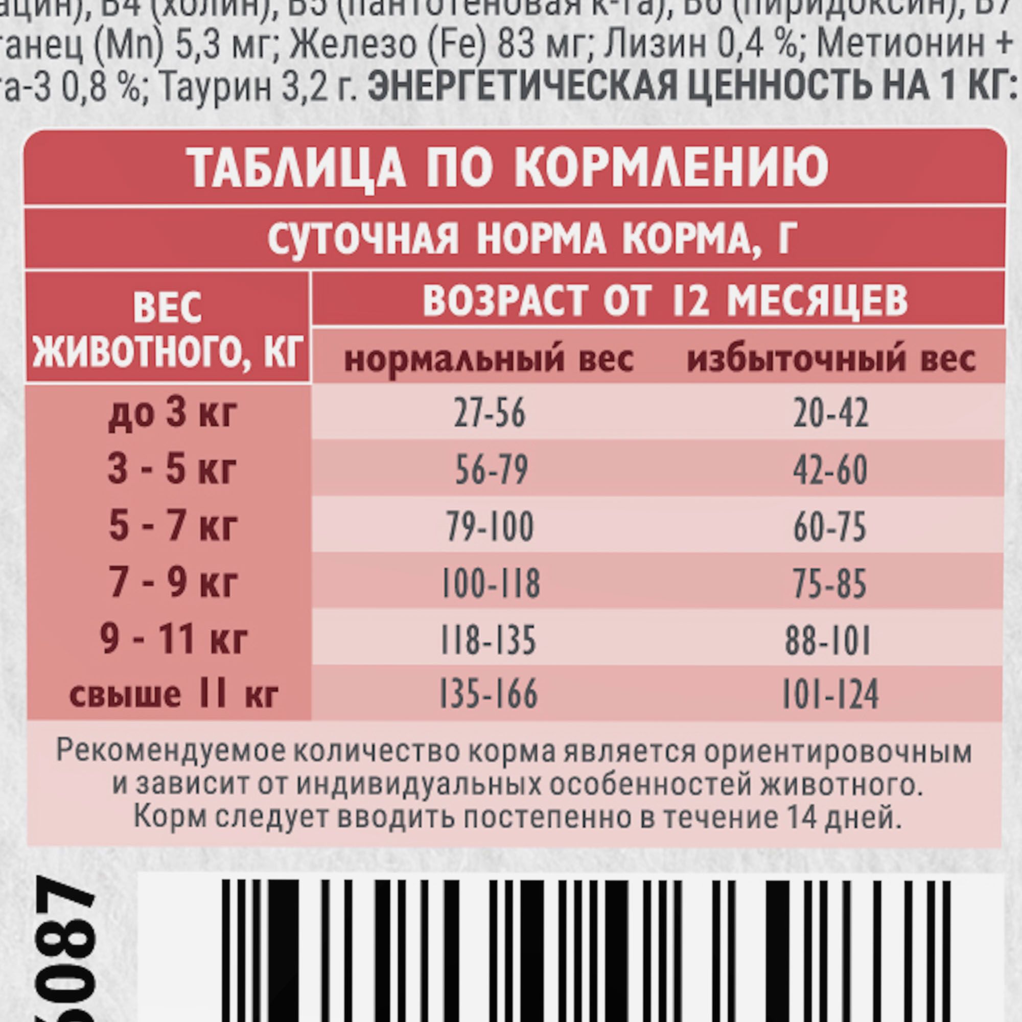 Корм обеспечит вашего питомца всеми необходимыми питательными веществами, поддерживая его здоровье, активность и хорошее самочувствие.