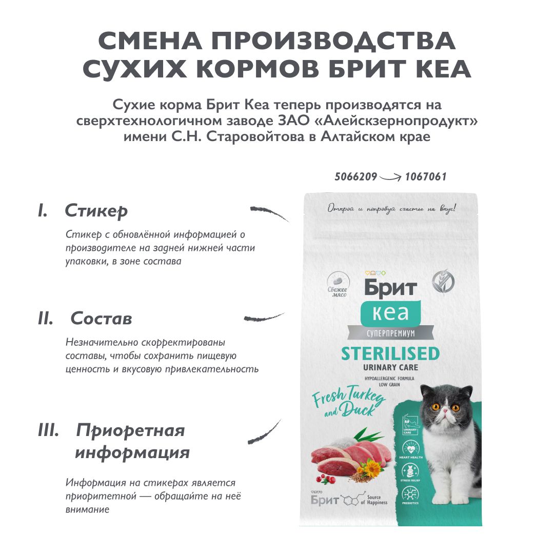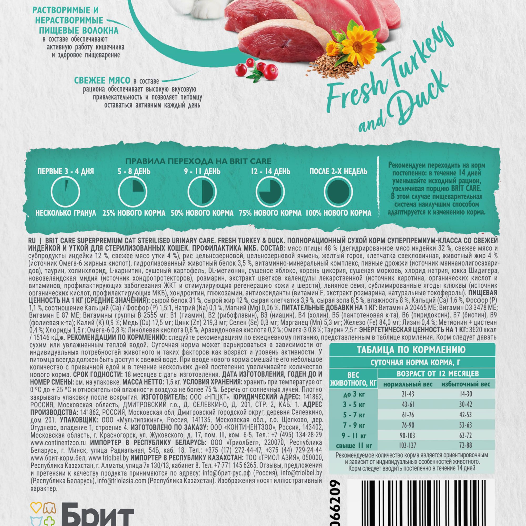 - BRIT CARE, Сухой корм с индейкой и уткой д/стер.кошек "Cat Sterilised Urinary Care", 1.5 кг, 5066209
