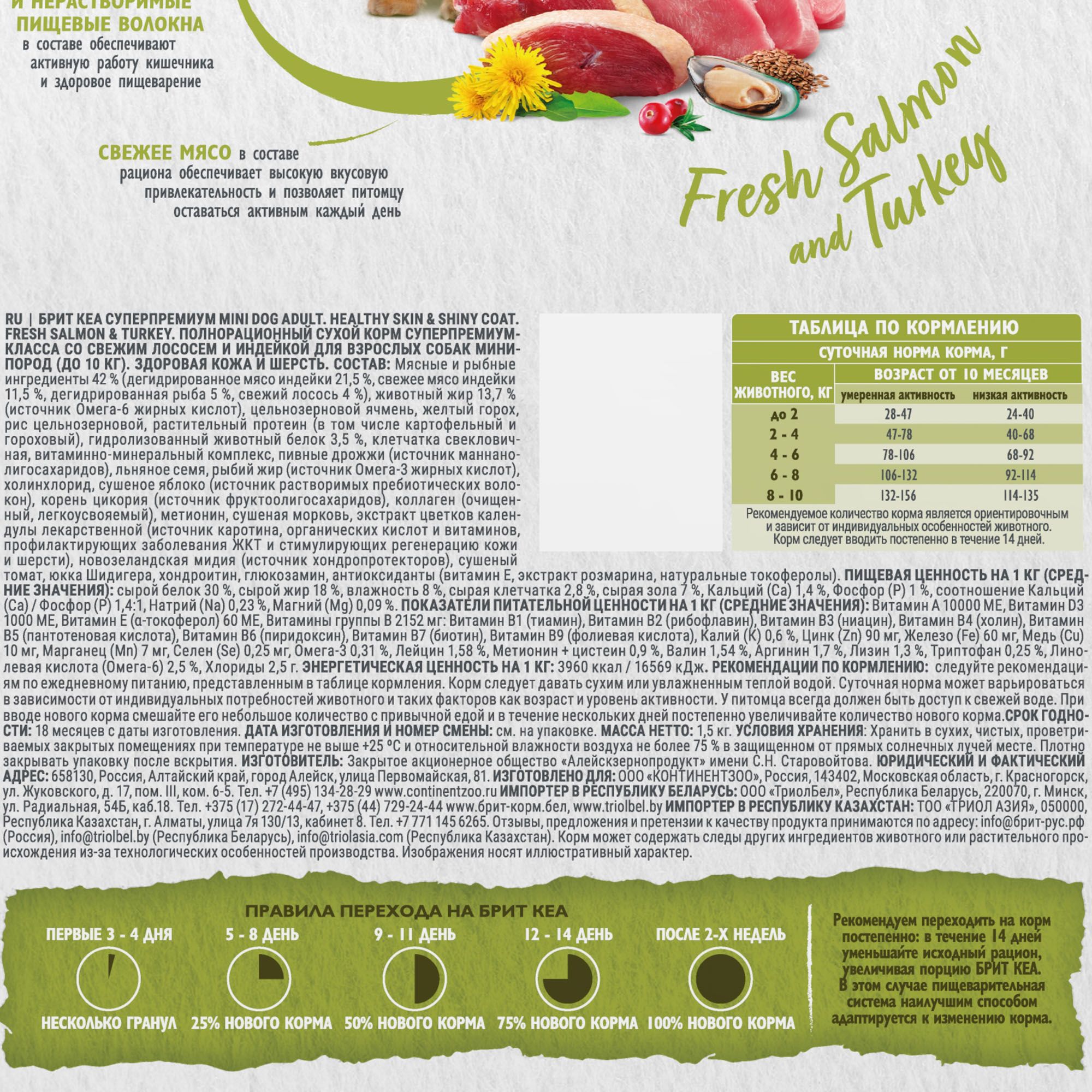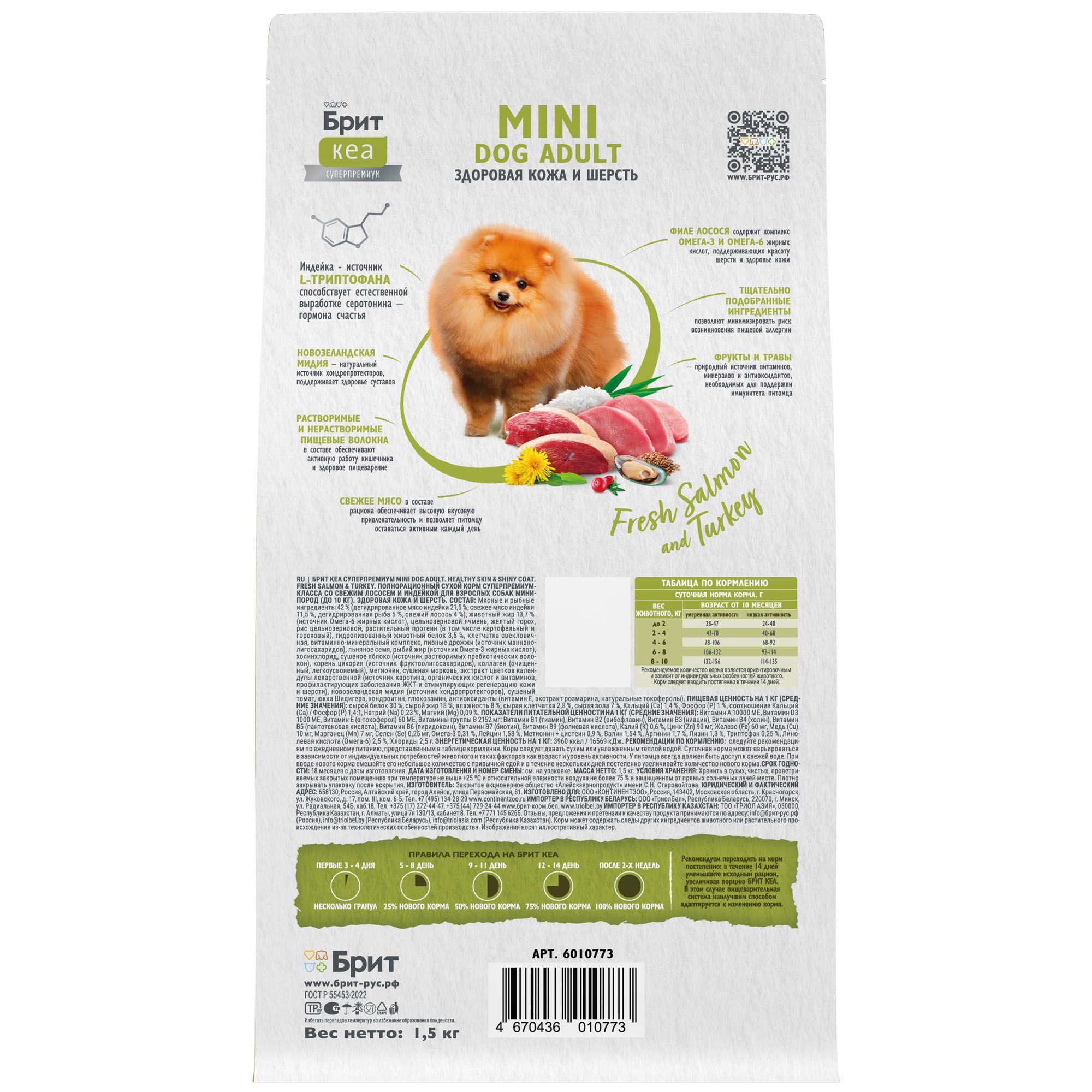 - Брит Кеа Сухой корм MINI DOG ADULT.HEALTHY SKIN & SHINY COAT с лососем и индейкой, 1,5 кг, 6010773