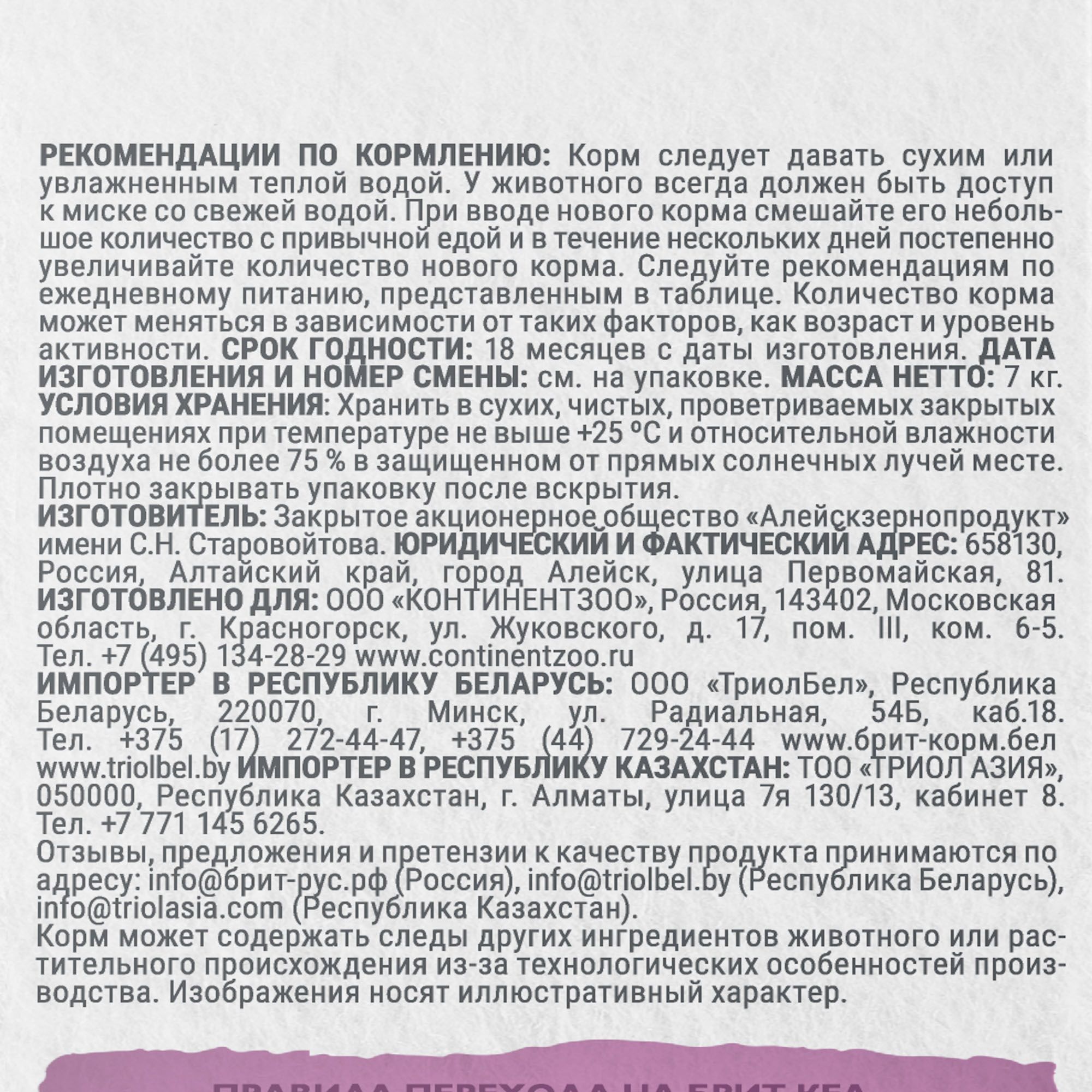 Важно: При вводе нового корма смешайте его небольшое количество с привычной едой и в течение нескольких дней постепенно увеличивайте количество нового корма. Следуйте рекомендациям по ежедневному питанию, представленным в таблице.