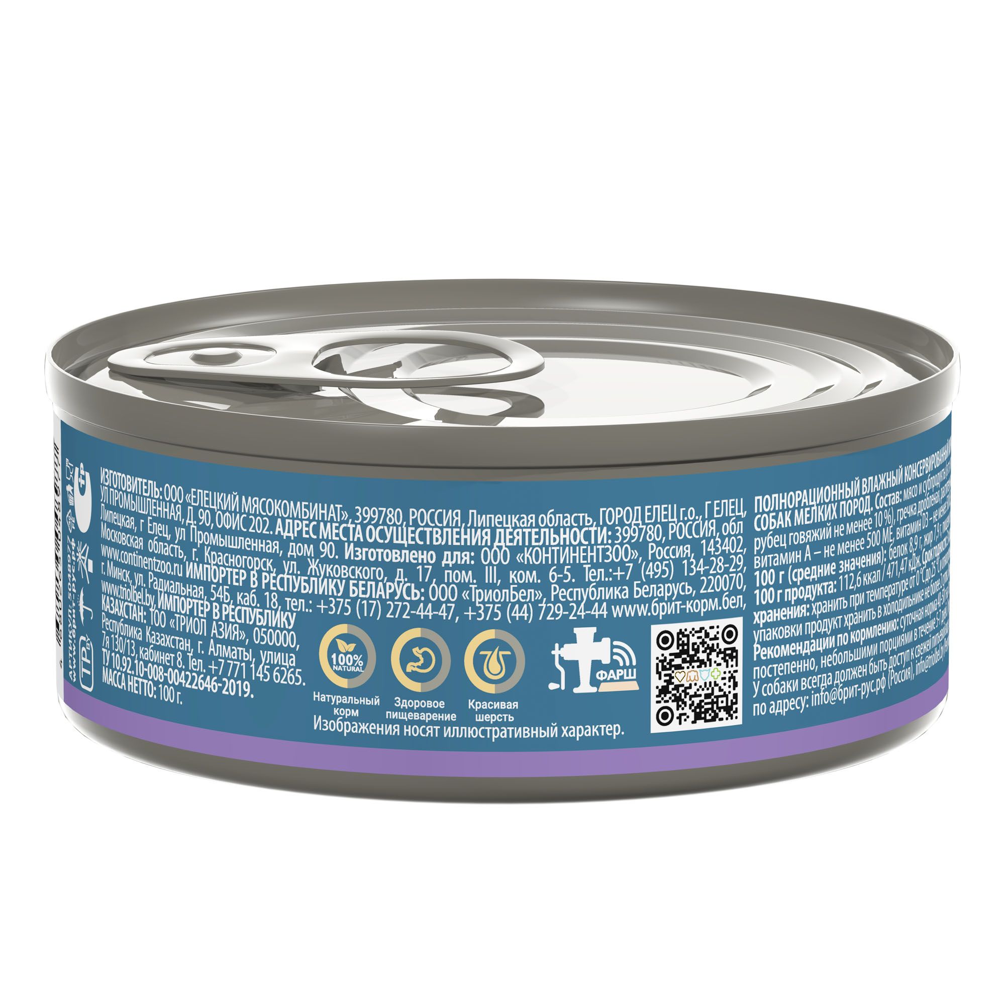 Консервированный корм идеально подходит для собак весом от 10 кг, обеспечивая оптимальную порцию для поддержания энергии и здоровья. Срок годности составляет 3 года с даты производства, указанной на упаковке.