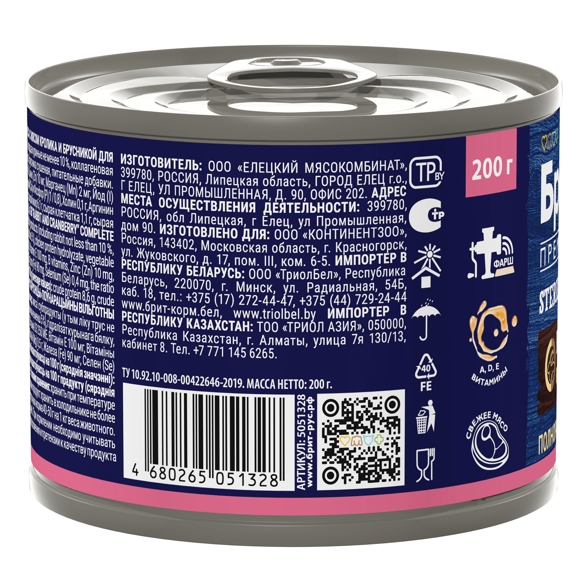 Свежее мясо кролика и сочная брусника обеспечивают потрясающий вкус и соблазнительный аромат, который не оставит равнодушным вашего питомца. Таурин в составе — важный ингредиент для поддержания остроты зрения и здоровья сердечно-сосудистой системы кошек. Консервированный корм содержит все необходимые витамины и минералы, которые требуются для ежедневного питания.