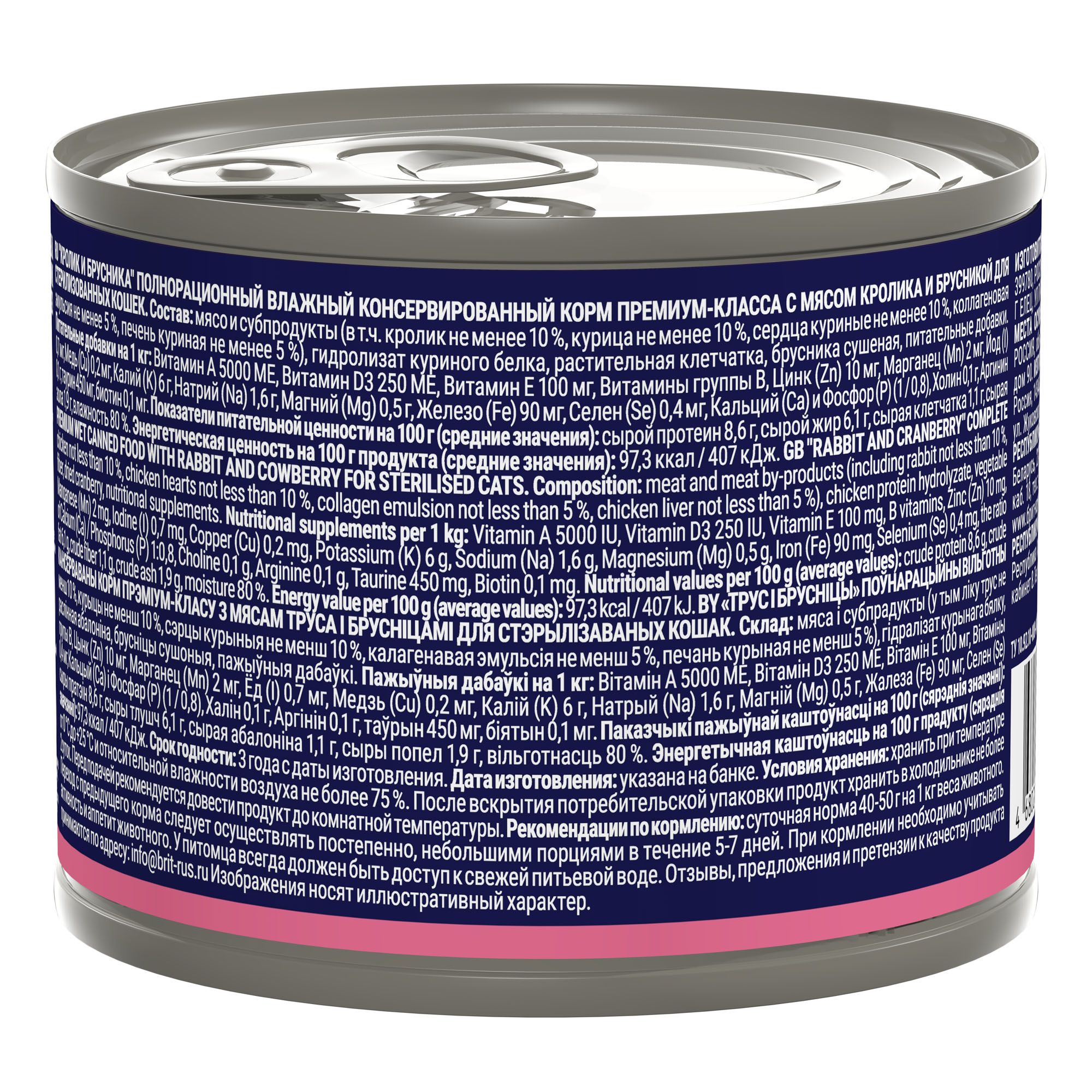 - BRIT PREMIUM BY NATURE, Консервы с кроликом и брусникой для стерилизованных кошек, 200г, 5051328