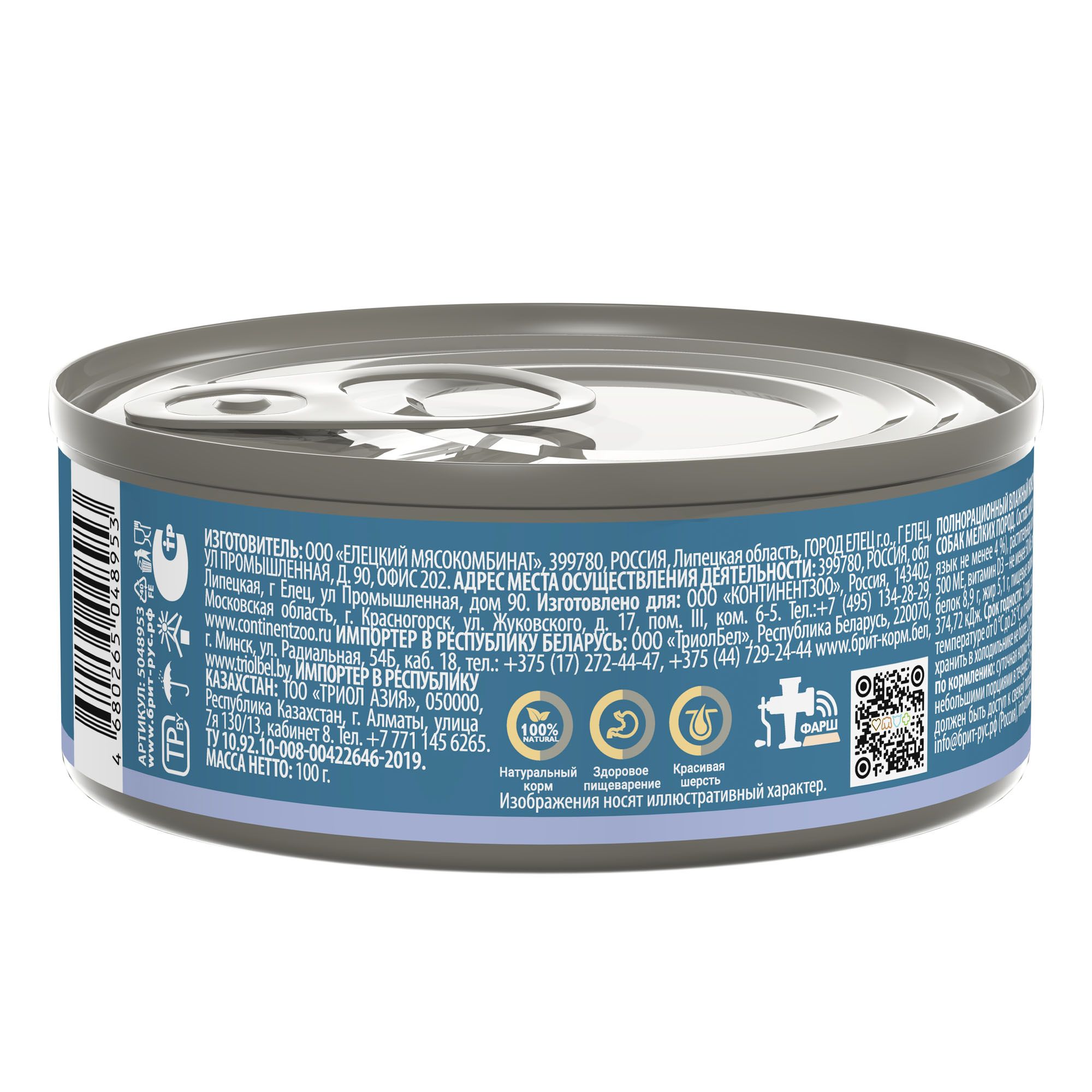 Консервы идеально подходят для собак мелких пород, обеспечивая оптимальную разовую порцию. Срок годности составляет 3 года с даты производства, указанной на упаковке. Храните корм при температуре от 0 °С до 25 °С и относительной влажности воздуха не более 75 %. После вскрытия упаковки храните продукт в холодильнике не более 2 суток и перед подачей доведите до комнатной температуры.