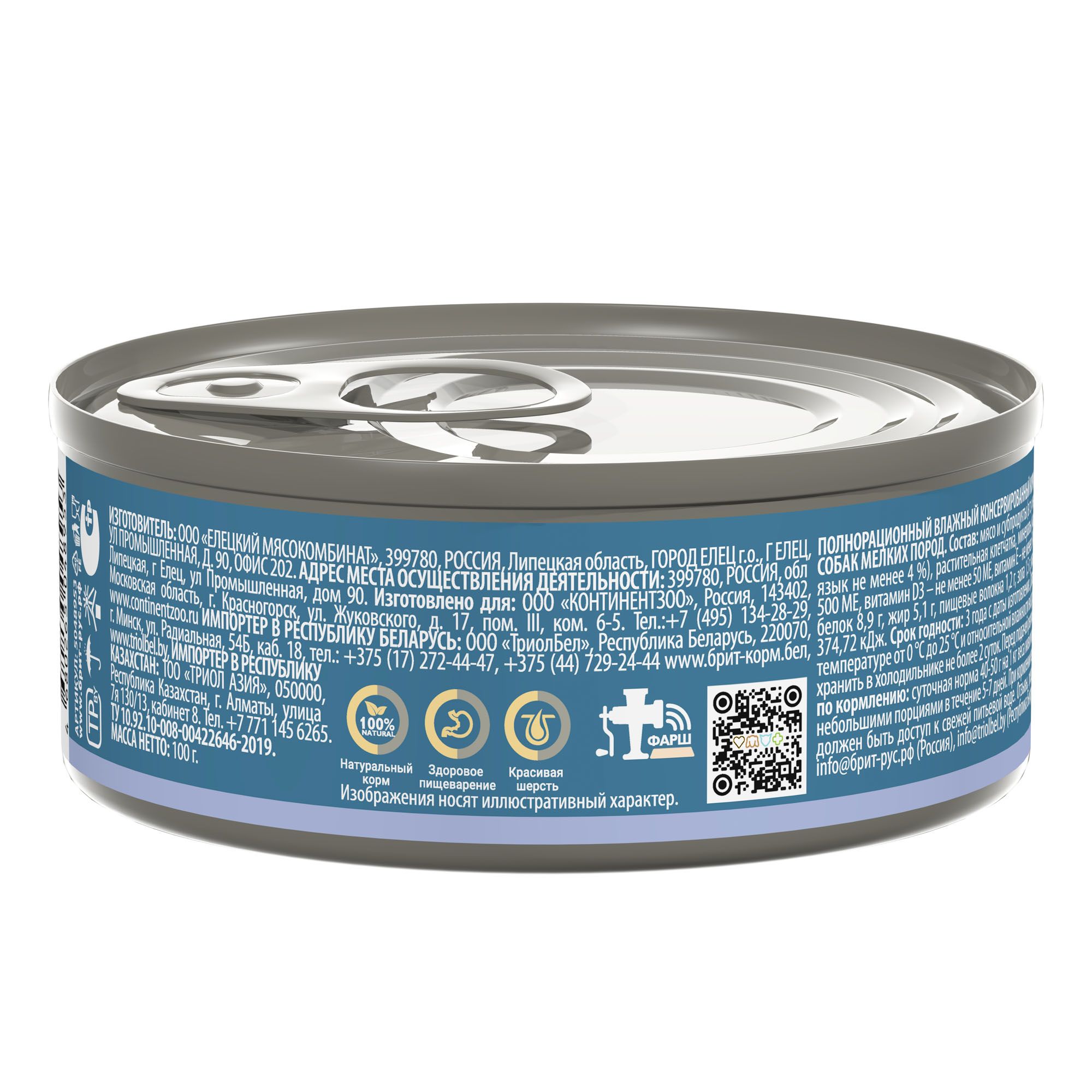 BRIT PREMIUM BY NATURE, Консервы с телятиной и языком для взрослых собак мелких пород, 100г, 5048953