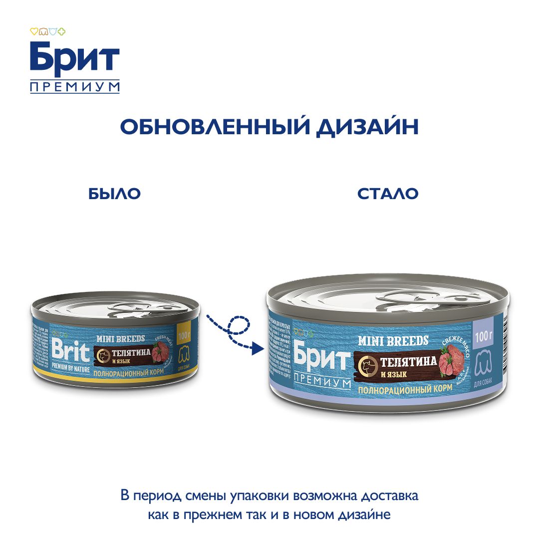 - BRIT PREMIUM BY NATURE, Консервы с телятиной и языком для взрослых собак мелких пород, 100г, 5048953