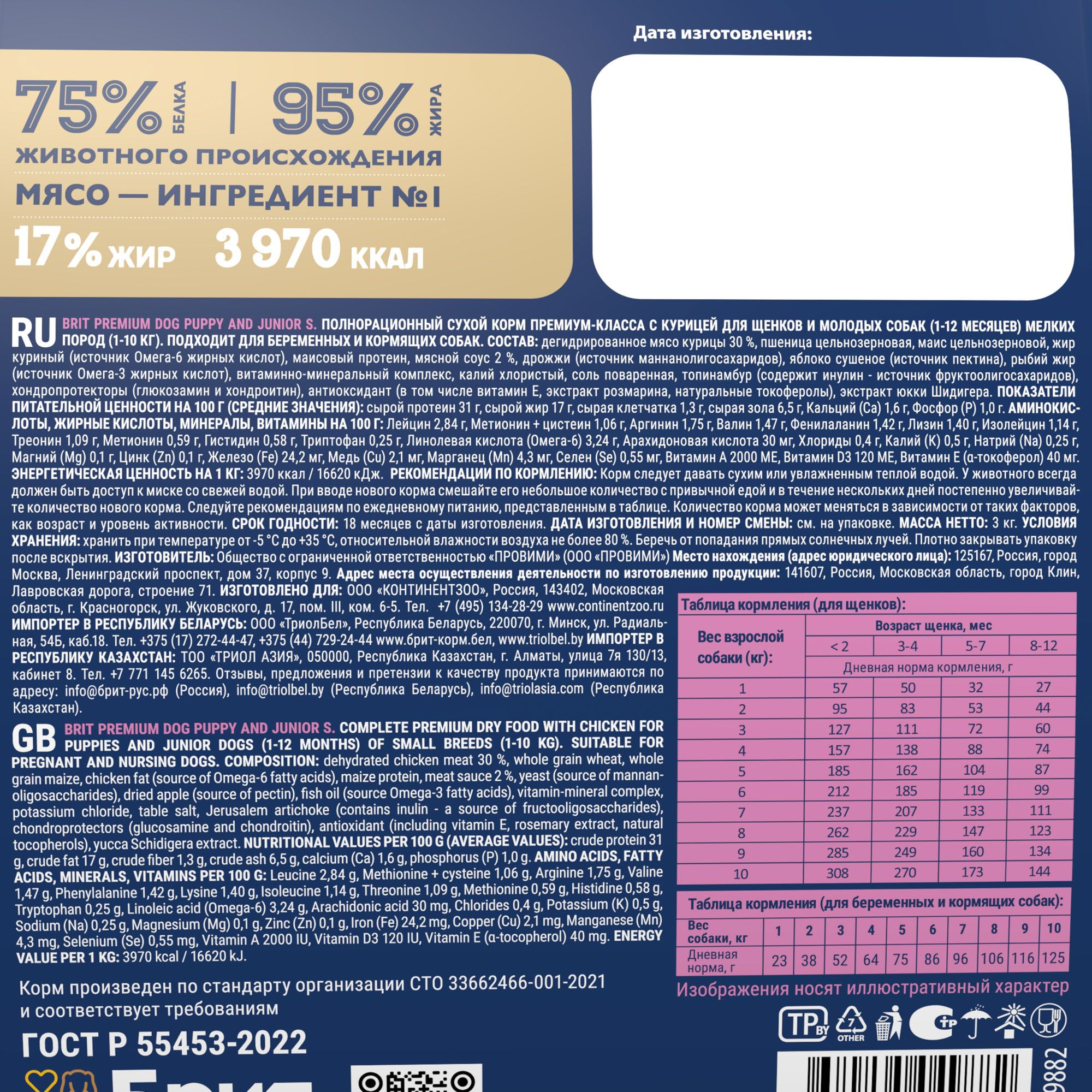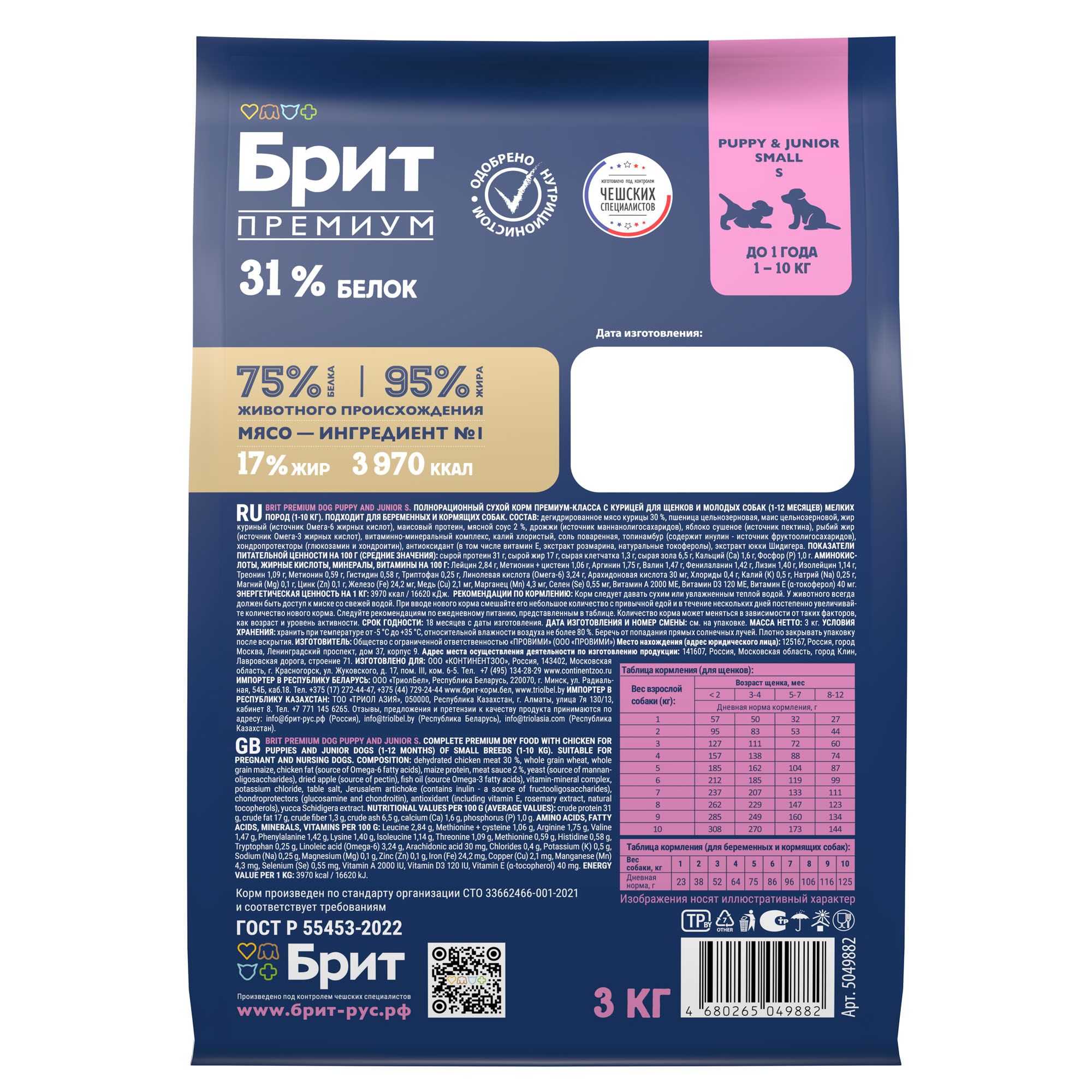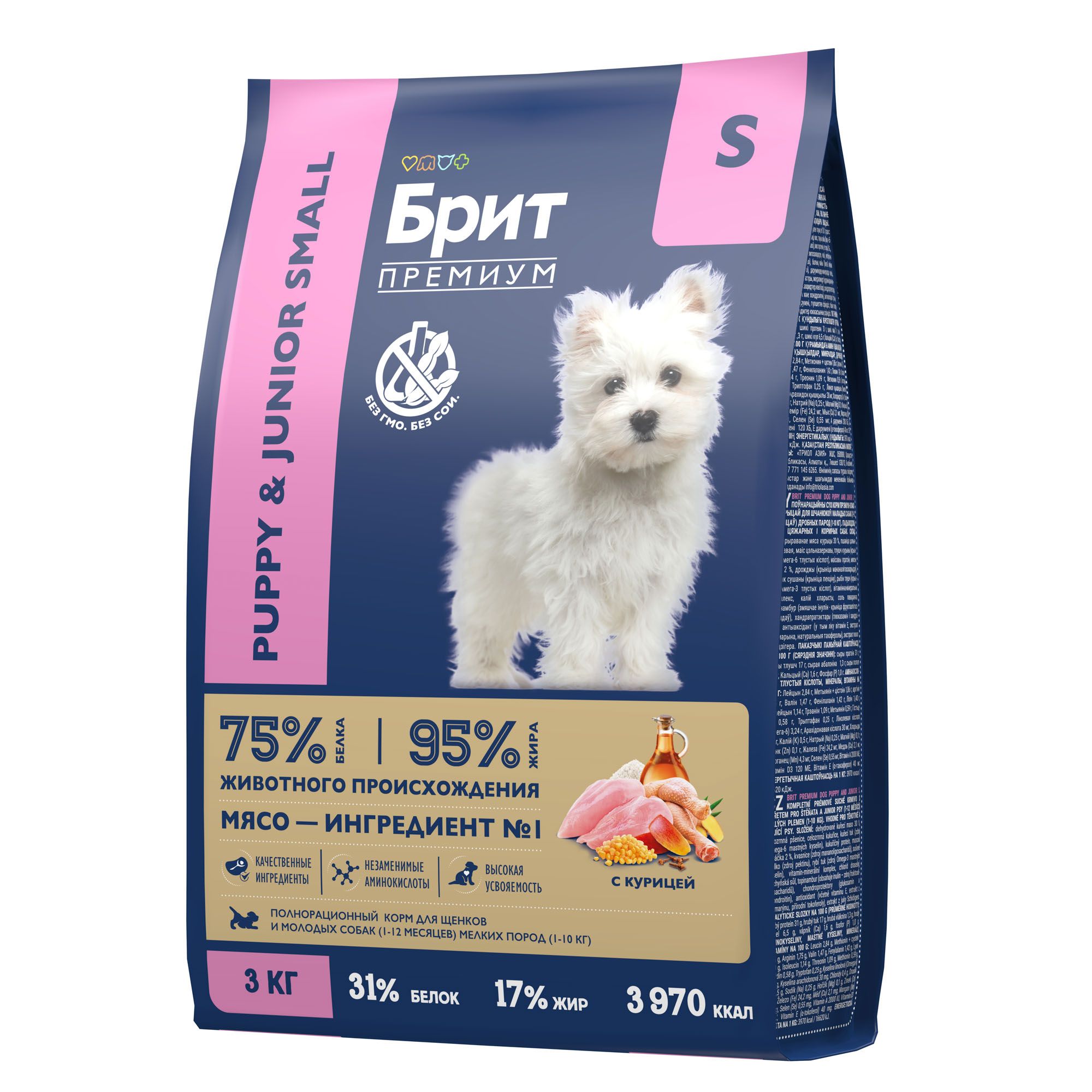 - BRIT PREMIUM, Сухой корм с курицей для щенков "Dog Puppy and Junior Small", 3кг, 5049882