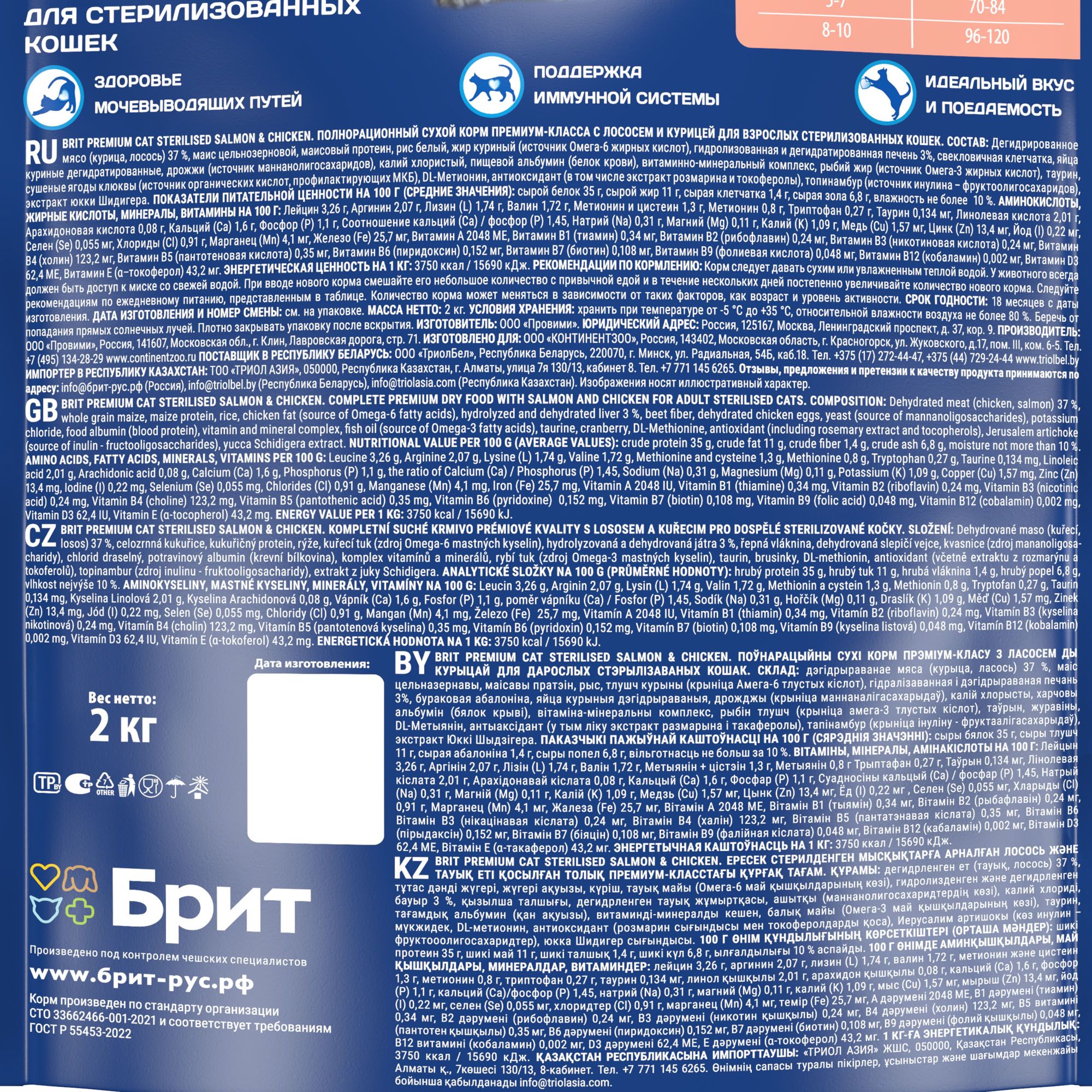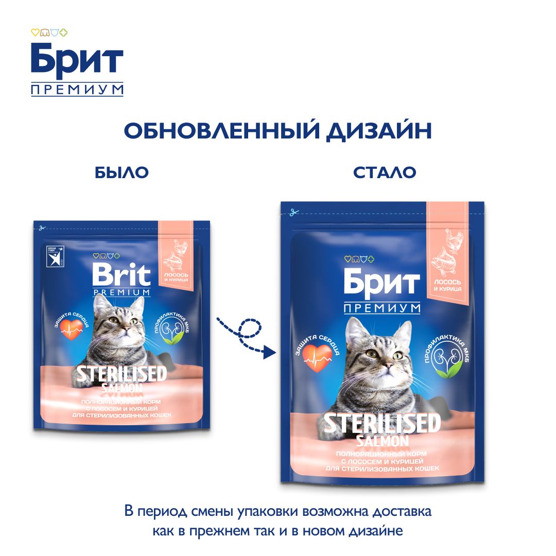 - BRIT PREMIUM, Сухой корм с лососем и курицей для кошек "Cat Sterilised Salmon&Chicken", 2кг, 5049851