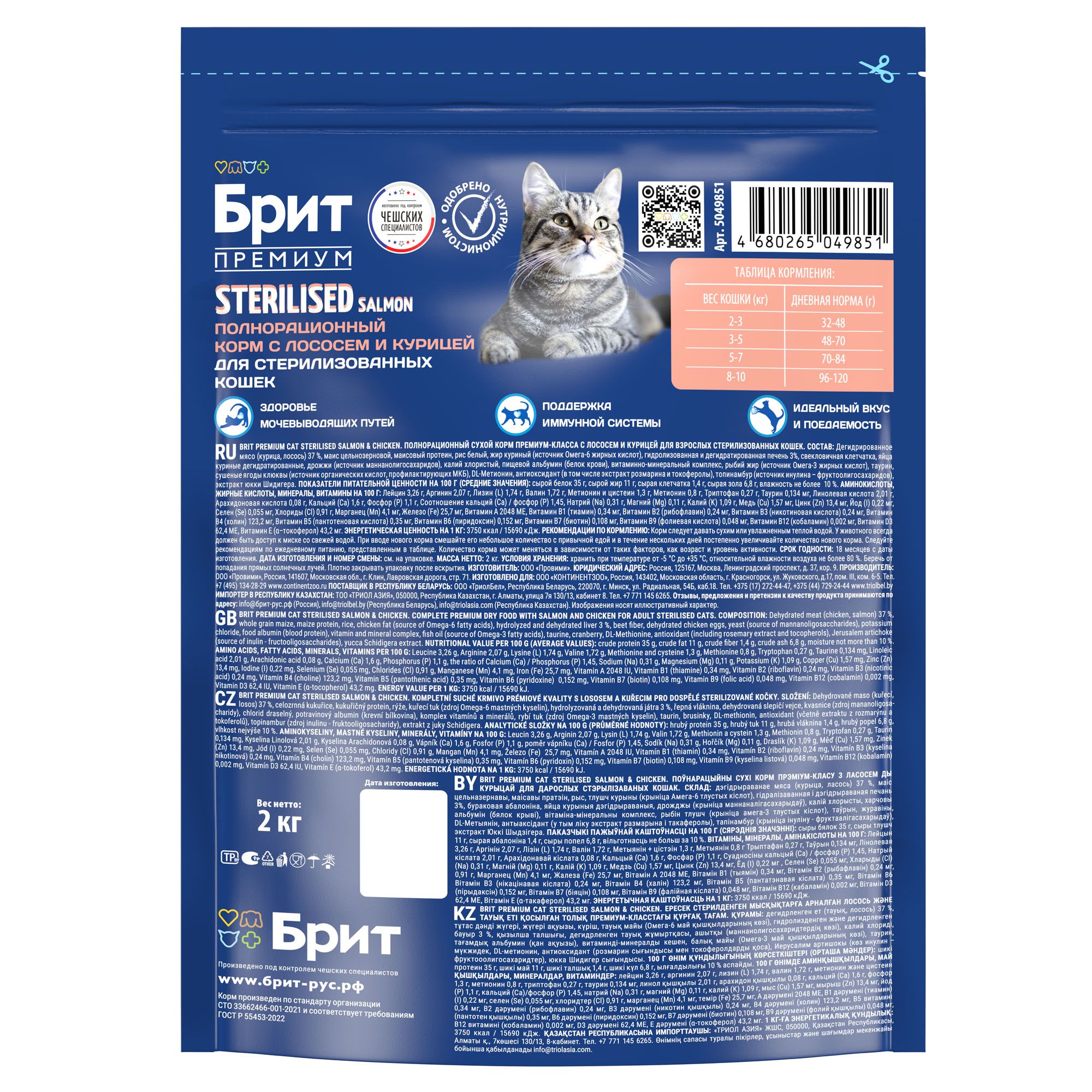 BRIT PREMIUM, Сухой корм с лососем и курицей для кошек "Cat Sterilised Salmon&Chicken", 2кг, 5049851