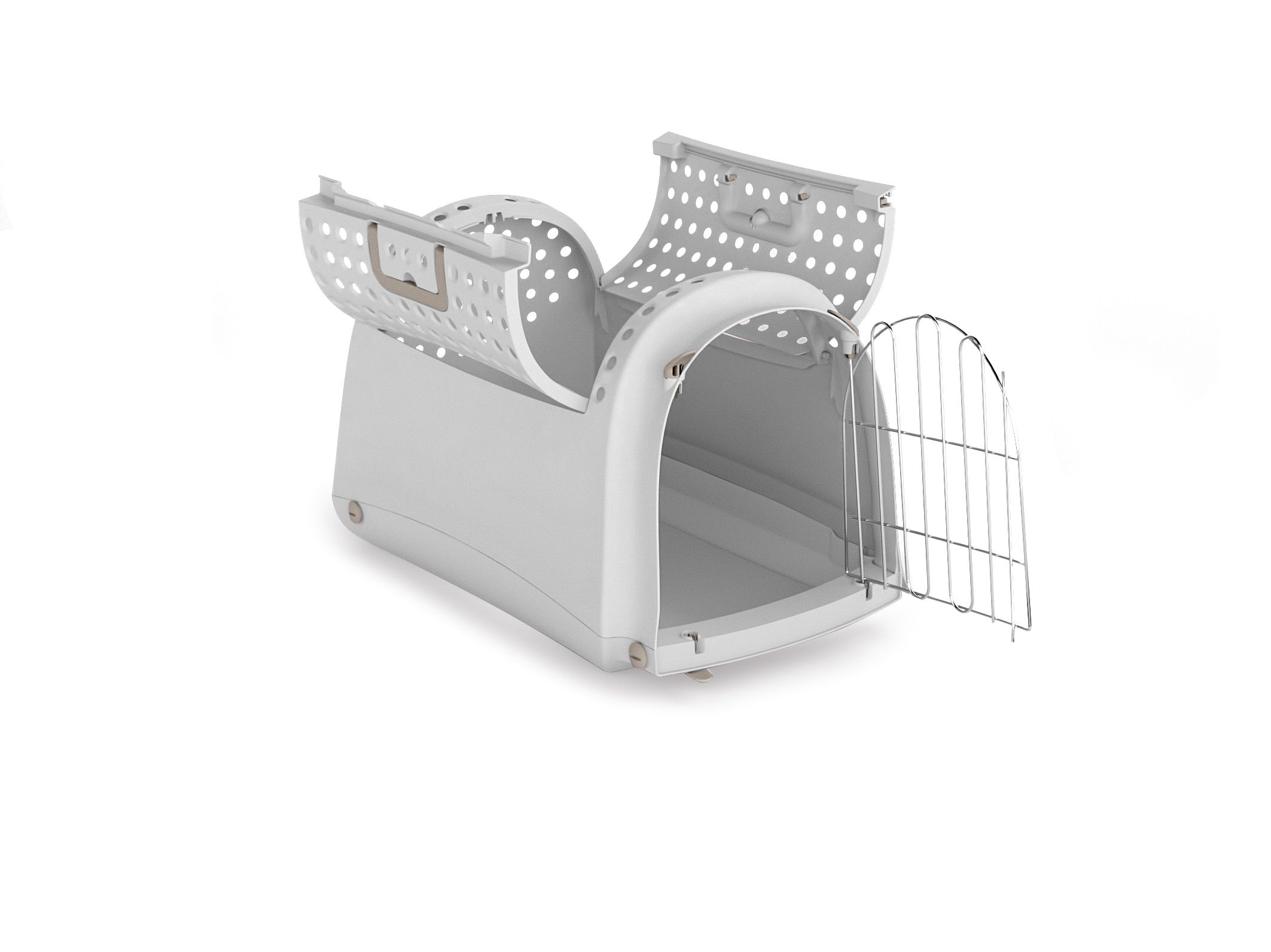 IMAC "Linus Cabrio" — удобная и надёжная пластиковая переноска для животных, идеально подходящая для кошек, собак мелких пород, а также кроликов и других мелких грызунов. Отличительная особенность — открывающаяся крыша с дверцами, которая позволяет легко и безопасно разместить питомца внутри. Это особенно важно для пугливых животных, которых сложно усадить через боковую дверцу.