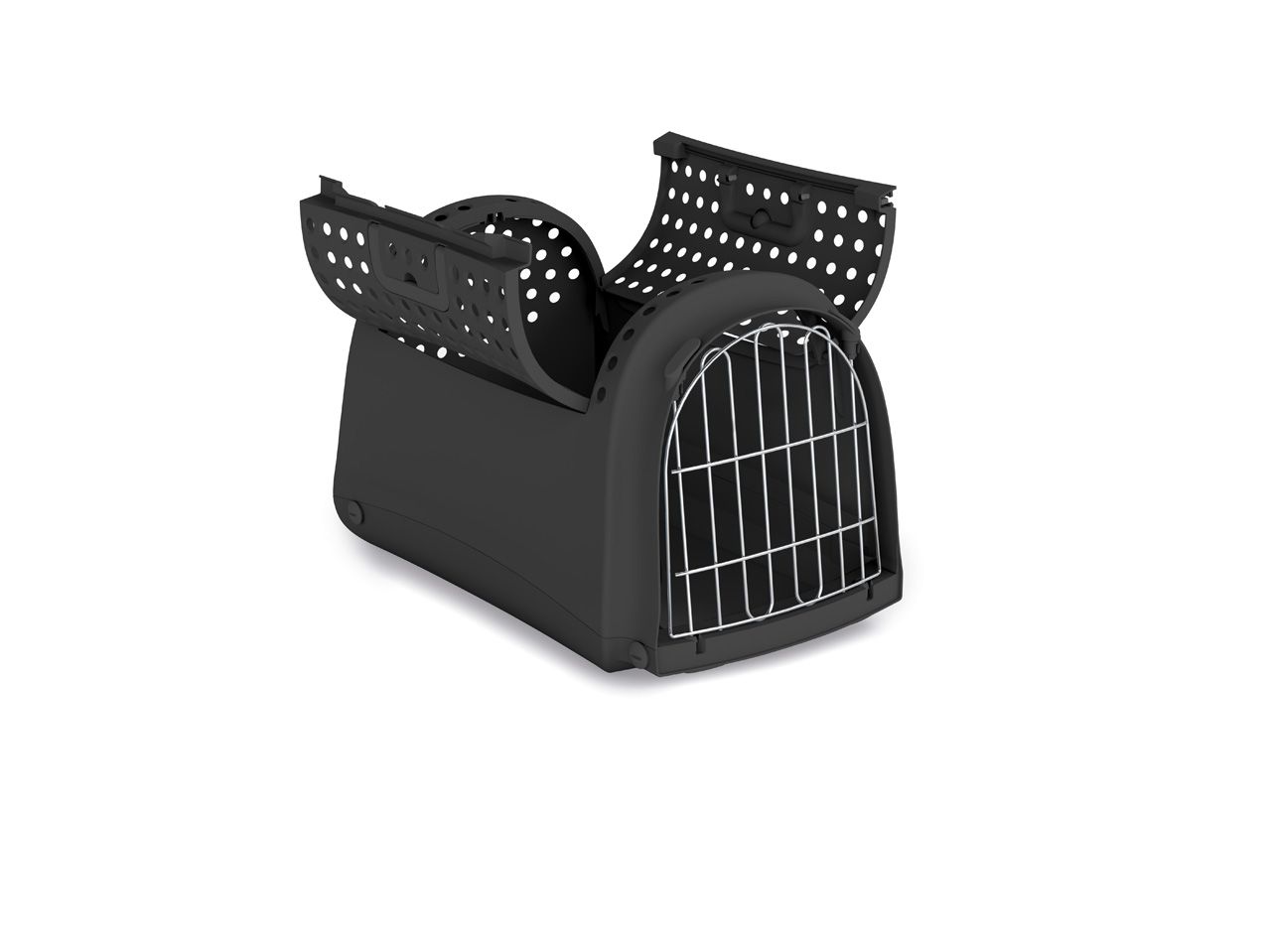 IMAC "Linus Cabrio" — удобная и надёжная пластиковая переноска для животных, идеально подходящая для кошек, собак мелких пород, а также кроликов и других мелких грызунов. Отличительная особенность — открывающаяся крыша с дверцами, которая позволяет легко и безопасно разместить питомца внутри. Это особенно важно для пугливых животных, которых сложно усадить через боковую дверцу.