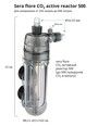 Flore CO2 500 активный реактор встраивается в существующую систему циркуляции воды (например, внешний фильтр) или альтернативно может работать совместно с помпой. Роторы гарантируют сильное перемешивание CO2 с аквариумной водой позволяя растворять несколько сотен пузырьков CO2 в минуту. Держатель, входящий в комплект, позволяет укрепить реактор внутри или снаружи аквариума (например, в тумбе под аквариум) в зависимости от существующего способа установки. Цвет материала (дымчато-серый), используемого для изготовления устройства, эффективен против заселения водорослями.
