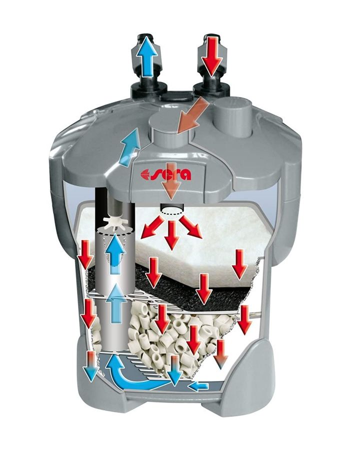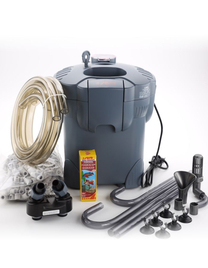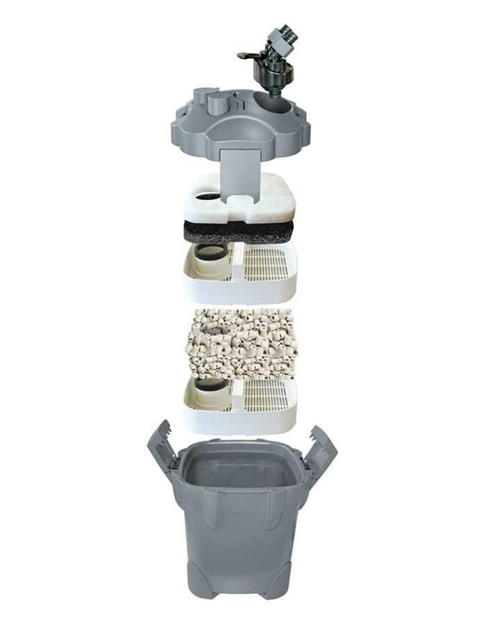Многоцелевой и удобный в эксплуатации внешний фильтр для пресноводных аквариумов. Мощный энергосберагающий внешний фильтр с большим количеством принадлежностей и полностью готовый к эксплуатации. Фильтрующие материалы располагаются в специальных емкостях и имеют удобный доступ.Емкости установлены послойно в оптимальной последовательности. Вход и выход фильтров разработан таким образом, что, для целей очистки, связующие шланги могут отделяться многофункциональным вентилем.Фильтр оснащен встроенной УФ-лампой 5 Вт, которая облучает фильтруемую воду и очищает ее отболезнетворных организмов, паразитов и водорослей на стадии размножения. Надежен в эксплуатации, отличается низким уровнем шумадвигателя и долгим сроком службы.Подходит для аквариумов до 250 литров. Максимальная производительность 750 л/час. Потребляемая мощность 32 Вт. Количество корзин для фильтрующих материалов 2. Размер (ШхВхГ) 29х38,7х29 см.