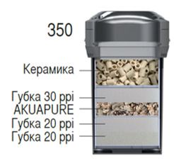 Фильтр оснащен контейнерами: верхний — для механической фильтрации, средний контейнер — для биологической фильтрации, нижний контейнер — для химической фильтрации. Объем одного контейнера: 3,9л.
