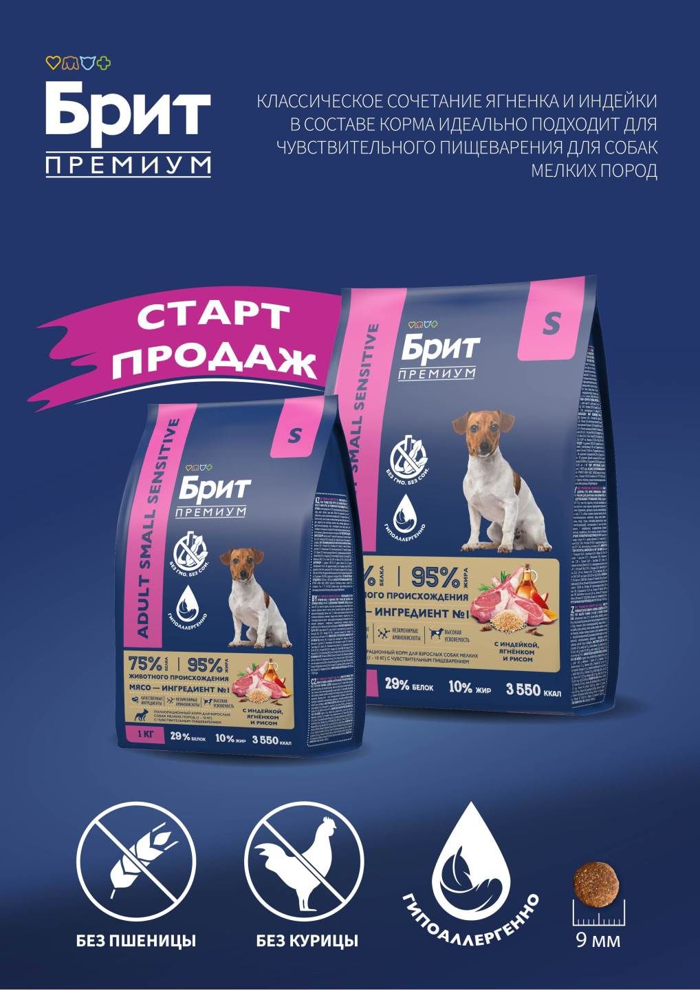 Brit Premium Dog Sensitive. Полнорационный сухой корм премиум-класса с индейкой и лососем для взрослых собак всех пород с чувствительным пищеварением, 1 кг