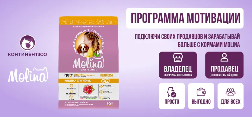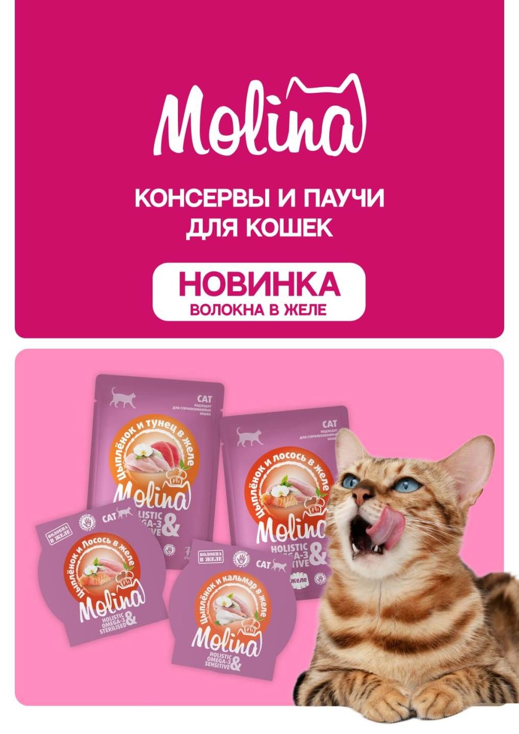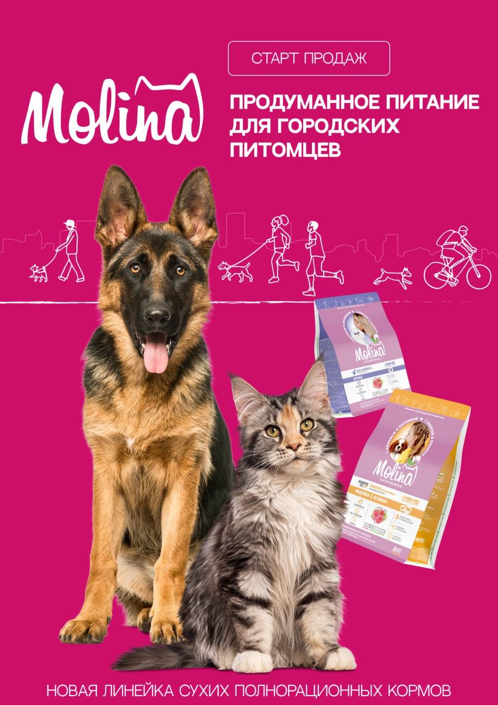 Новая линейка сухих кормов Molina для кошек и собак создана с учетом рекомендаций по питанию животных, ведущих малоподвижный образ жизни.